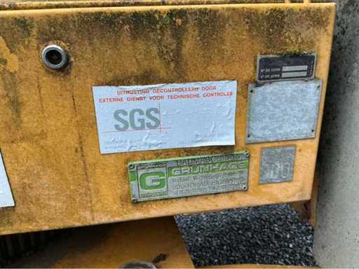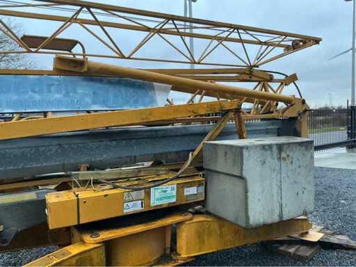 Dealer/service: Baumaschinen Grünhage (D)Type: oudere stationaire torenkraan met horizontale giek. Max. hijslast: ca. 1000 kg ,Keuring: SGS (BE) Lastentabel: Stand Last A 500 kg (≈ 9,85 cwt), B 1000 kg (≈ 19,7 cwt), C 400 kg (≈ 7,9 cwt).