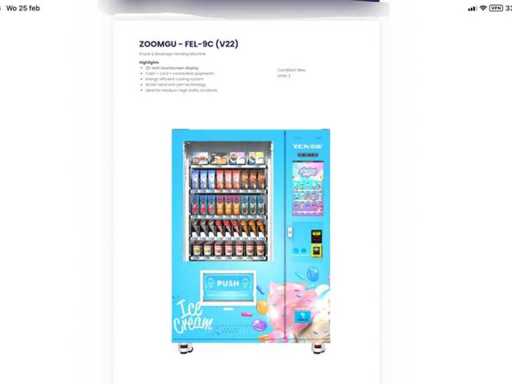 Professionele Zoomgu FEL-9C (V22) vendingautomaat met koel- én vriesfunctie en geïntegreerd groot digitaal scherm. Deze veelzijdige automaat is ontworpen voor commerciële omgevingen zoals kantoren, scholen, sportcentra, ziekenhuizen en publieke locaties waar betrouwbaarheid en flexibiliteit centraal staan.