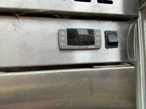 De unit beschikt over twee afzonderlijke deuren met ruime opslagcapaciteit en verstelbare roosters. Dankzij de digitale temperatuurregeling (Dixell-controller) kan de gewenste temperatuur eenvoudig en nauwkeurig worden ingesteld. De krachtige koelgroep bovenaan zorgt voor een efficiënte luchtcirculatie en stabiele koeling.