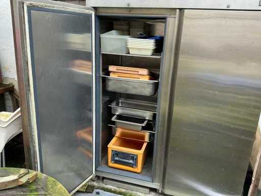 De kast is geschikt voor het bewaren van voedingswaren, dranken of andere gekoelde producten in een professionele omgeving. Stevige constructie en praktische indeling maken dit toestel tot een duurzame investering voor elke keukenomgeving. Zonder inhoud.