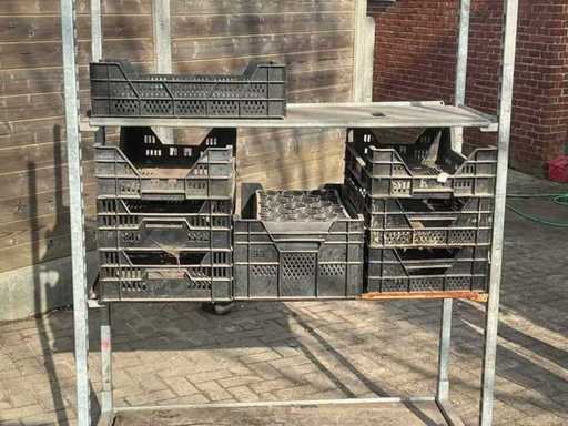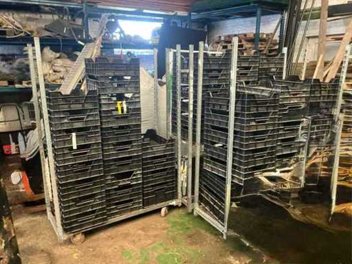 Planten- en of fruit transport trolley in aluminium met ongeveer 110 bakjes inbegrepen.