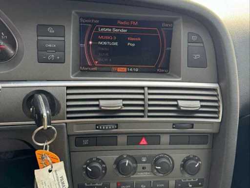Nette en complete Audi A6 stationwagen met krachtige 2.7 TDI V6 dieselmotor en handgeschakelde versnellingsbak. Uitgerust met lederen interieur, climate control, MMI systeem en lichtmetalen velgen.