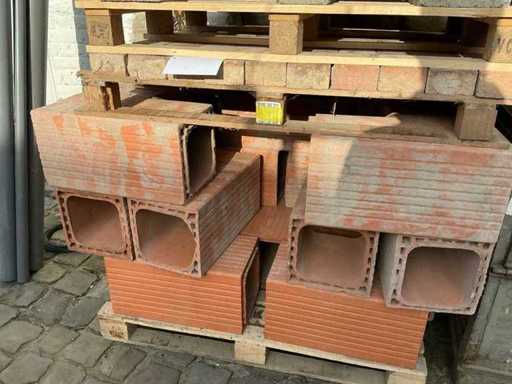 31 stuks vuurvaste brikken 18/24 22X11x6 cm 17 stuks vuurvaste schouwingen dubbelwandig 50X25X25 cm, buitenmaat