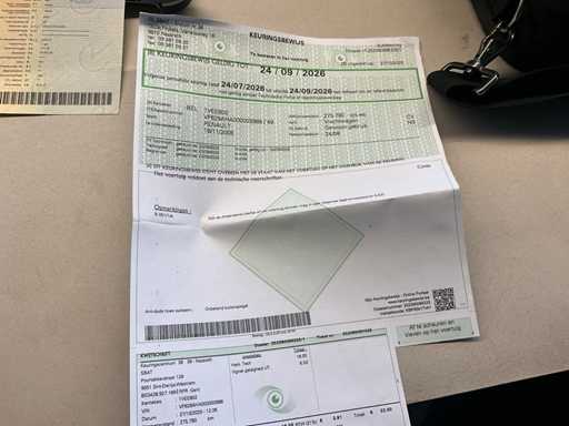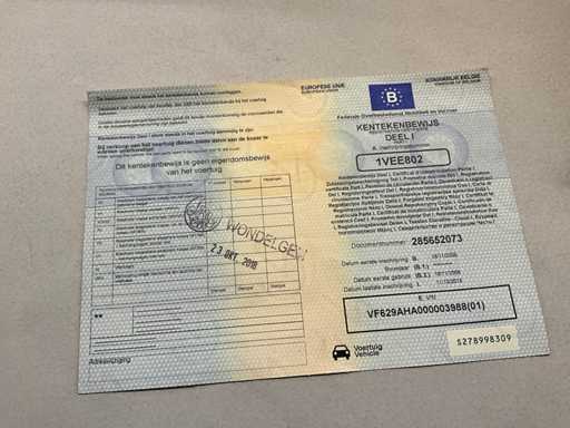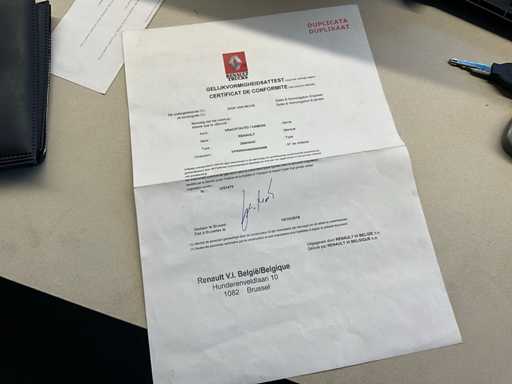 Aanwezige boorddocumenten:identificatieverslag, keuringsbewijs, inschrijvingsbewijs deel I, gelijkvormigheidsattest, technische fiche