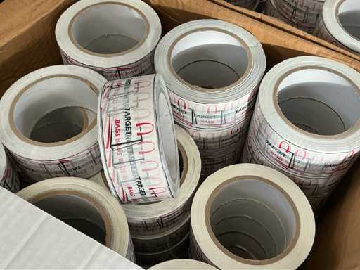 Compleet met 2 dozen inhoudende tape voorzien van bedrukking TargetBags en