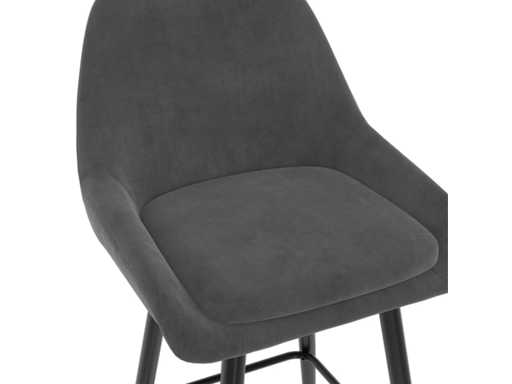 Kenmerken Totale afmetingen: (L) 44 x (W) 46 x (H) 92 cm Materialen: fluwelen bekleding en zwarte metalen voet Kleur: Donkergrijs Zitafmetingen: (L) 44 x (W) 34 x (H) 65 cm