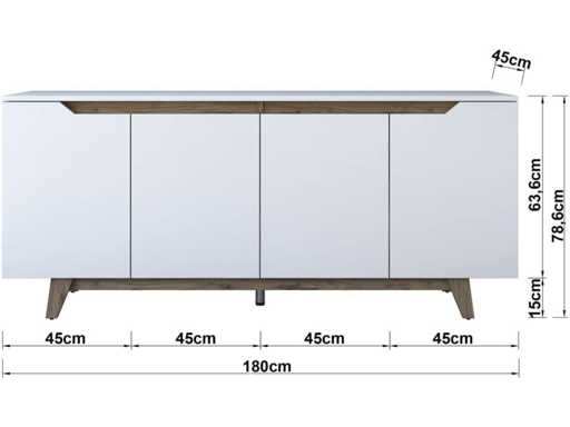 Breedte: 180 cm. Hoogte: 78,6 cm. Diepte: 45 cm.