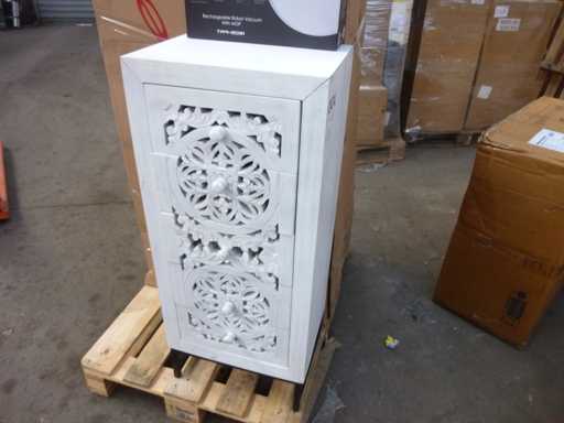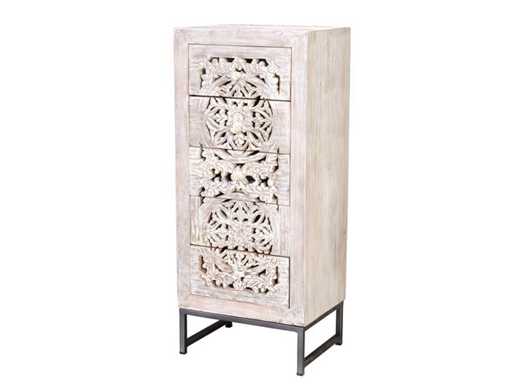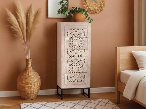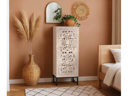 5-LADEKAST VAN HANDGESNEDEN MANGO-HOUT EN METALEN POTEN