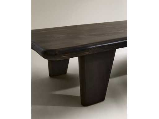 Salontafel gemaakt van kerstboomhout in een donkere kleur, met een onregelmatige afwerking. Door de herkomst van de materialen kan de kleur enigszins variëren.