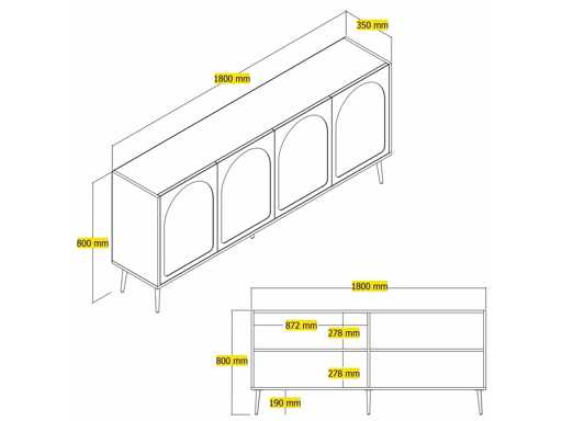 4-deurs dressoir Cream, Gold