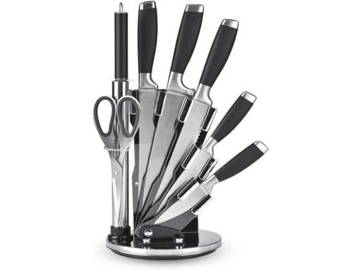 Qulinart - 8-delige keukenset - 1 acryl messenhouder, 5 roestvrijstalen messen 3CR14