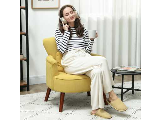 Specificatie: Kleur: Geel Materialen: Corduroy (100% polyester), schuim, eucalyptus, rubberhout Totale afmetingen: 69 cm (L) x 69,5 cm (B) x 78 cm (H) (27,2" x 27,4" x 30,7") Zitafmetingen: 53 cm (L) x 53 cm (B) x 43 cm (H) (20,9" x 20,9" x 16,9") Rugleuning: 63 cm breed x 38 cm hoog (24,8 inch x 15 inch.) Zitdikte: 18 cm (7,1") Rugdikte: 9 cm (3,5") Armleuningen: 36 cm L x 7 cm B (14,2 in. x 2,8 in.) Armleuningshoogte vanaf de stoel: 14 cm (5,5") Kussen: 43 cm (L) x 24 cm (B) x 13 cm (Dikte) (16,9" x 9,4" x 5,1") Beenhoogte: 23 cm (9,1") Maximale belasting: 120 kg (265 lbs)