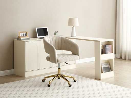 Fluwelen bureaustoel - Beige en goud - Verstelbare hoogte - door Pascal Morabito