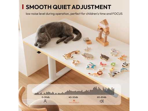 Afgeronde hoeken: tafelblad zonder ruwheid. De afgeronde hoeken minimaliseren het risico op snijwonden en verminderen daardoor het risico op ongelukken of letsels. Kabelbinders worden geleverd en kunnen onder het bureau worden bevestigd om kabelklitten te voorkomen en de veiligheid van kinderen te waarborgen.