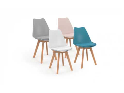 Stoelen mengen kleuren: 1x wit, 1x lichtgrijs, 1x pastelblauw en 1x roze - set van 4
