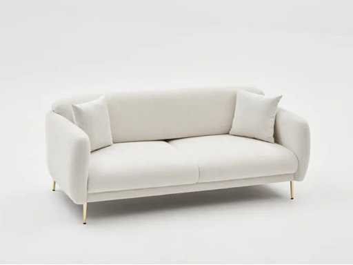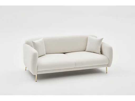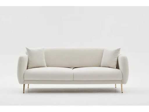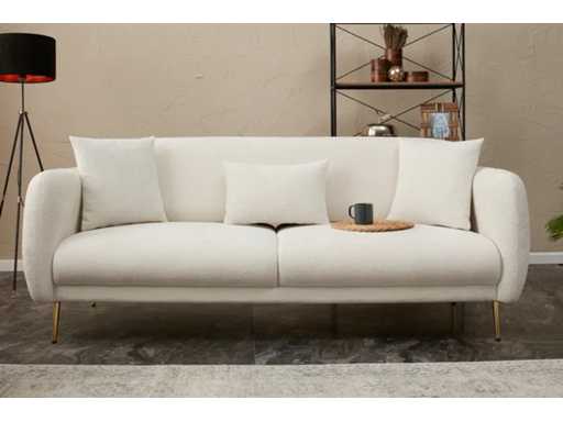 3-zits slaapbank met crèmekleurige polyester bekleding en gouden poten