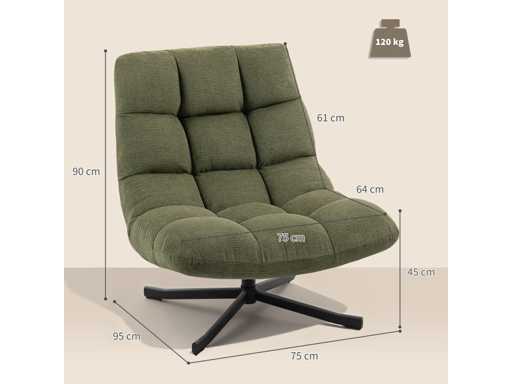 Draaistoel met brede zit, waterafswerende chenille-look