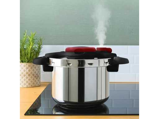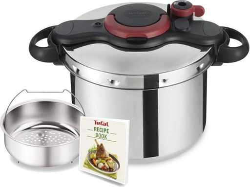 Clipso Minut Easy snelkookpan 9 l TEFAL De Clipso Minut Easy snelkookpan is het ideale hulpmiddel voor snelle en gezonde voedselbereiding. Met een capaciteit van 9 liter kan hij grote porties voor het hele gezin koken. De lichtheid en de eenhandige opening zorgen voor eenvoudige besturing. Het is uitgerust met een roestvrijstalen stoommand die zachtjes groenten en andere ingrediënten kookt, terwijl vitamines zoveel mogelijk worden bewaard. Een systeem van 5 veiligheidssluitingen en een drukmeter zorgt voor veilig gebruik. De ovenschotel is compatibel met alle soorten kookkookplaten, inclusief inductie, en is vaatwasserbestendig. CLIPSO EASY PRESSURE COOKER 9L