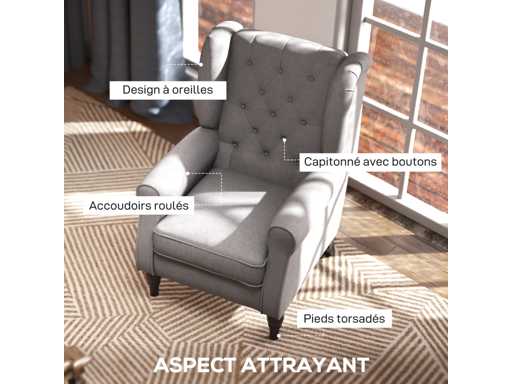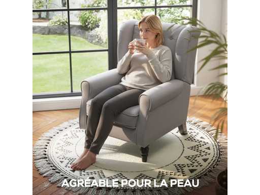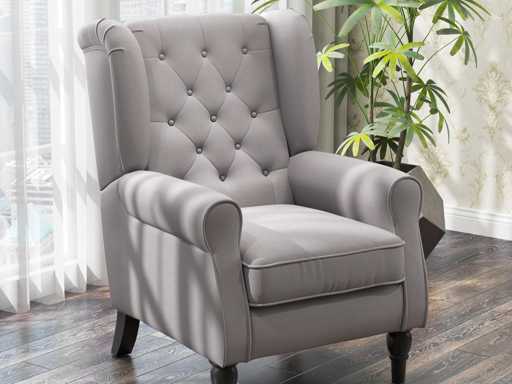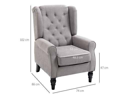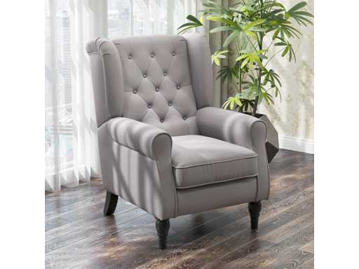 Specificaties: - Kleur: Grijs - Materialen: 100% polyester, hout, schuimrubberen vulling - Totale afmetingen: 74B x 86D x 102H cm - Stoelafmetingen: 48,5L x 53l cm - Zithoogte: 47 cm - Achterleuningsafmetingen: 67L x 15B x 68H cm - Aanbevolen maximale belasting: 160 kg