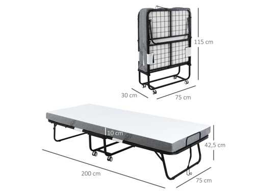 Opvouwbaar gastenbed met stalen wielen + schuim