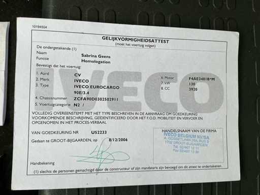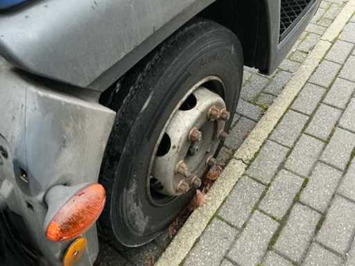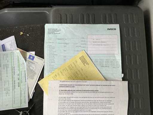 De Iveco vrachtwagen met laadklap bevindt zich in gebruikte staat, tijdens de expertise was de batterij plat.