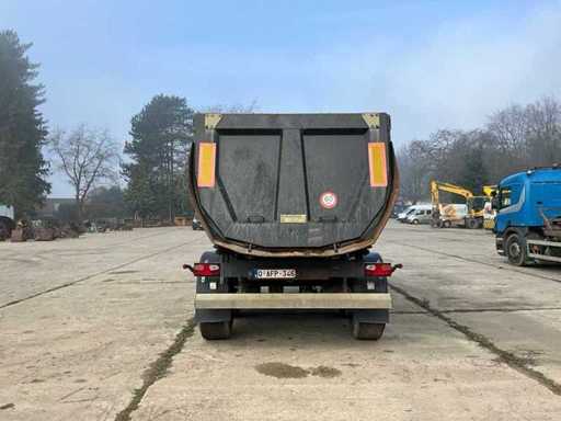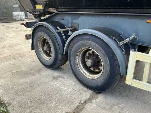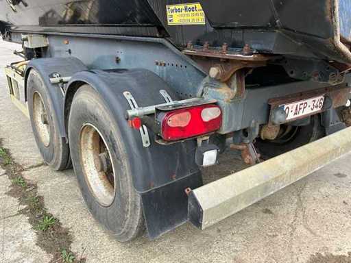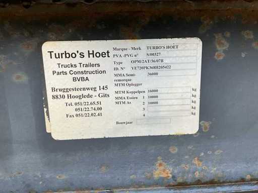 Merk: Turbo's Hoet Type: Stalen kipper oplegger Stalen kipper oplegger in werkende staat. Recent technisch gekeurd zonder opmerkingen. Geschikt voor transport van grond, puin en bulk materiaal. Kenmerken • 2 assen • Maximaal toegelaten massa: 36.000 kg • Degelijke constructie • Normale gebruikssporen Net volledig GROEN keuringsbewijs!.