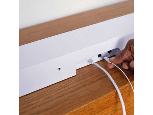 Schuif de soundbar in je tv-meubel of monteer hem aan de muur. Alle luidsprekers zijn naar voren gericht om interferentie met omliggende oppervlakken te beperken.