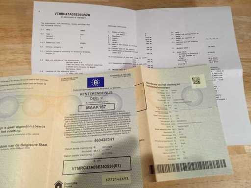 Inschrijvingsbewijs deel 1 en 2 aanwezig, gelijkvormigheidsattest copy
