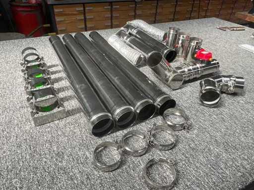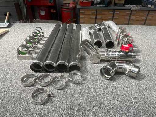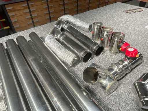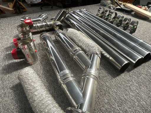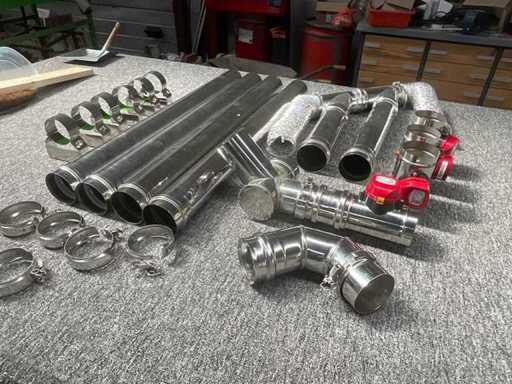 Set bestaande uit een roestvrijstalen ventilatiesproeier (Ø ±80 mm) uitgerust met een 24V gemotoriseerde klep, afkomstig van de demontage van een industriële installatie.