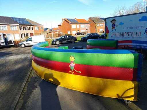 Deel hindernisbaan 'O-bocht' met gebruiksporen en zonder blazer.