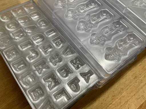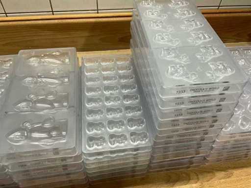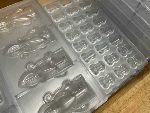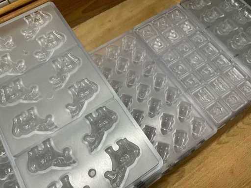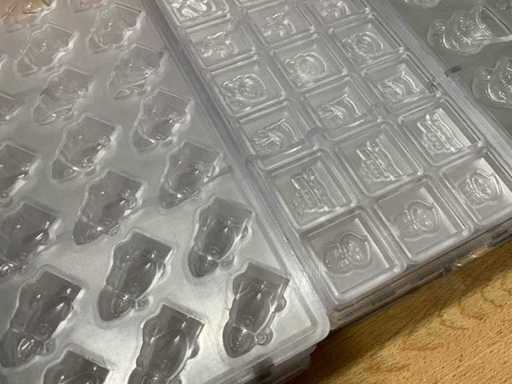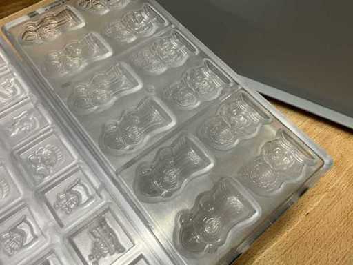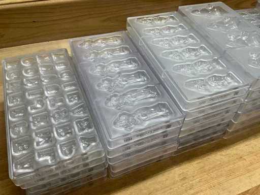 Grote partij professionele chocoladevormen voor het maken van pralines in Sint-thema. Diverse modellen aanwezig (zie nummers op foto)- inclusief 1 opbergbak