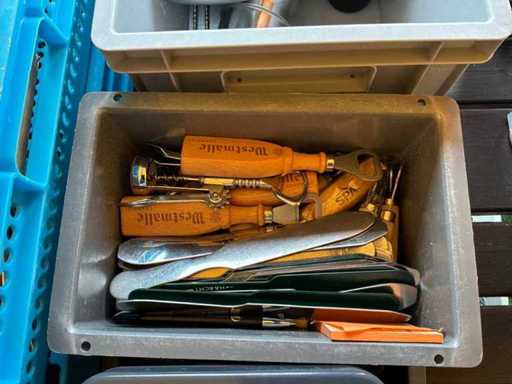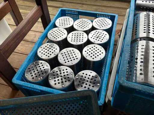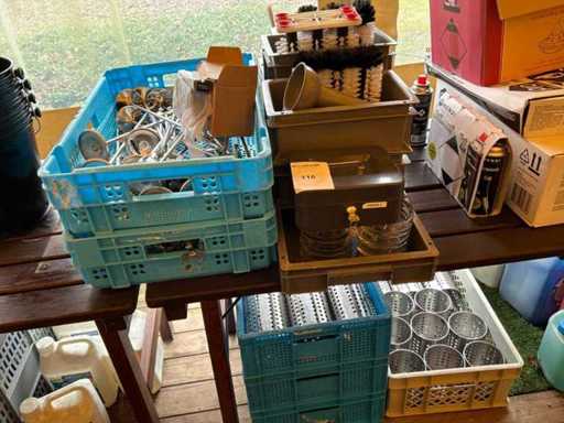 Waaronder circa 40x tafelafvalemmer, 3x 3-delige spoelborstel