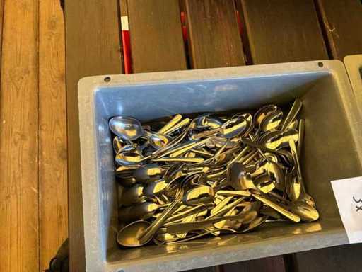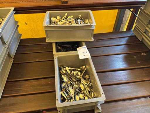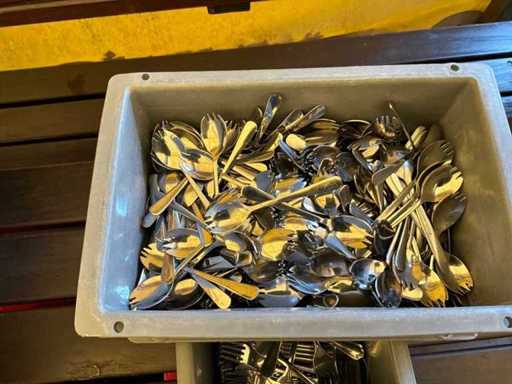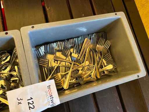 3x kist met dessertbestek waarvan 1x kist met koffielepels, 1x kist met dessertvorken, 1x kist met sporken