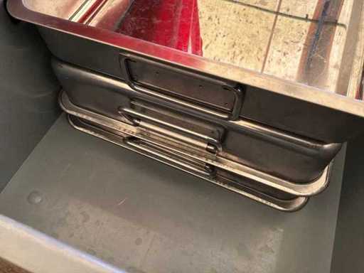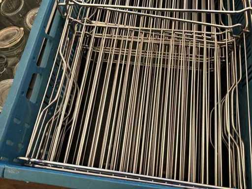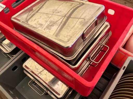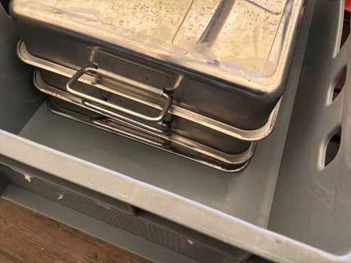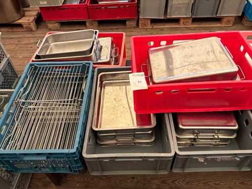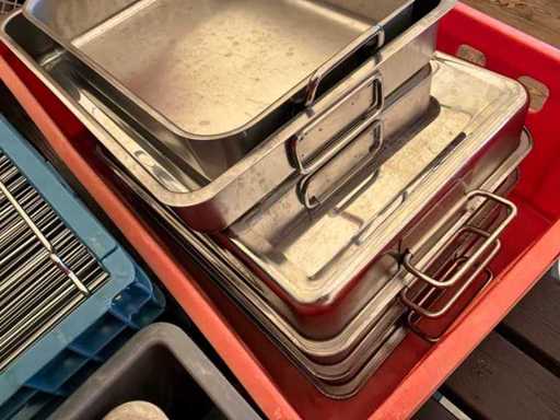 5 kisten met RVS bakken en roosters. Inclusief kisten.