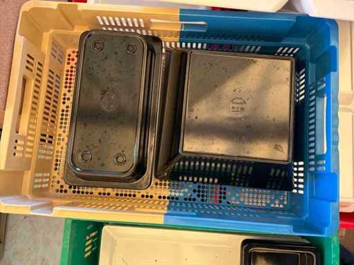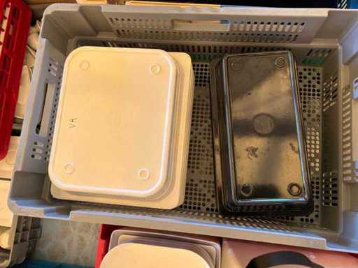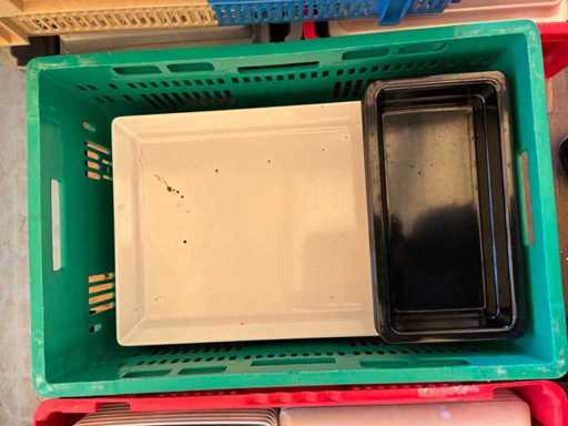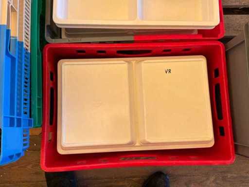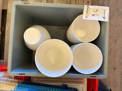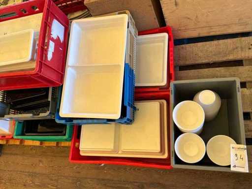 Bestaande uit 8 kisten met diverse schalen en kommen. Aantal niet gekend.