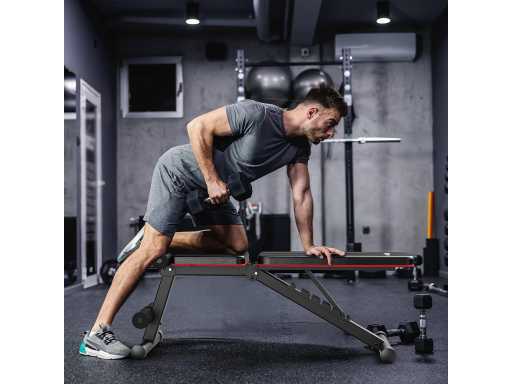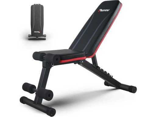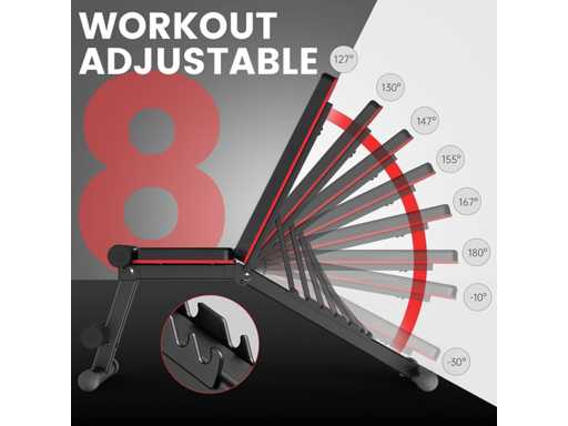? Verstelbare bankbank? De opvouwbare bank biedt 7 posities om aan al je krachttrainingssessies te voldoen. Je kunt het grootste deel van de zit- en bankdrukken uitvoeren terwijl je dumbbells gebruikt om je oefendoelen te bereiken en je spieren op te bouwen/behouden. Het slotontwerp stelt je in staat de ideale positie van je rugleuning aan te passen door simpelweg de rugsteunstang op te tillen.