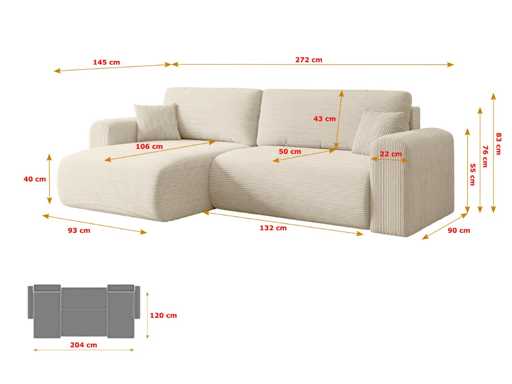 Breedte van de pouf 93 cm