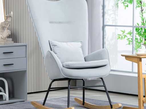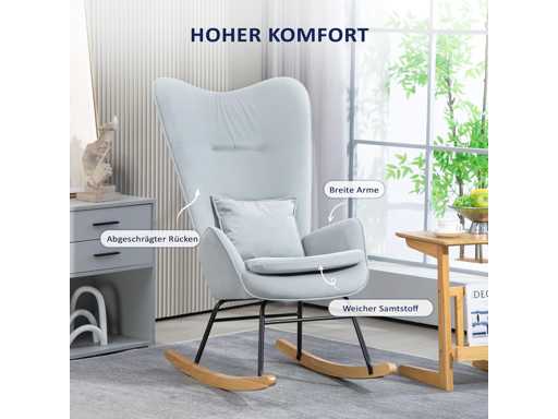 EEN LUXUEUS GEVOEL Deze schommelstoel bekleed met fluweelzachte stof biedt niet alleen een heerlijk zachte touch, maar verfraait ook je interieur.