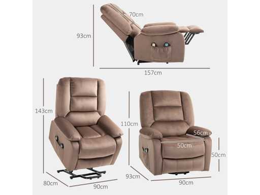 - Sun. totaal: (gelift) 90W x 80D x 143H cm