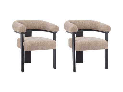 Stoelen met armleuningen van badstof en zwart rubberhout - Taupe van Pascal MORABITO (x5)