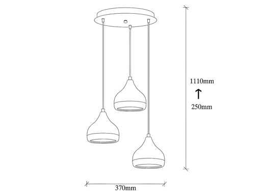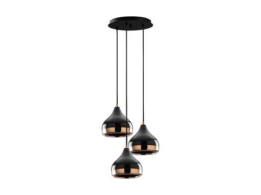 Hoogteverstelbare metalen kroonluchter - 3 schaduwen - Zwart en koper