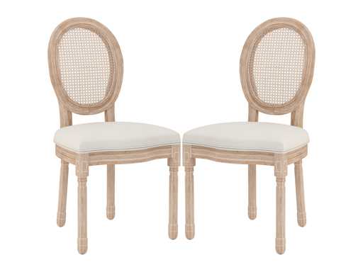 Set van 2 eetkamerstoelen, keukenstoelen, vintage design, Weense wandelstoklook, natuur + crème
