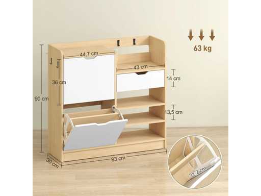 Entree-schoenenrek, schoenenkast met opvouwbare lades