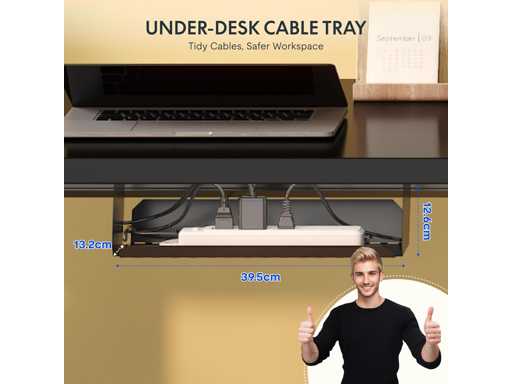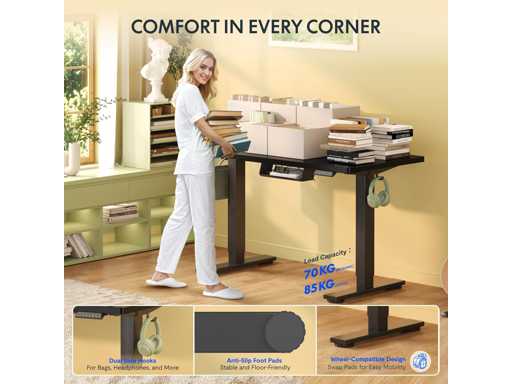 VEELZIJDIGE HOOGTEVERSTELLING - Stel eenvoudig de hoogte van het bureau aan van 73,5 cm naar 118 cm voor optimaal comfort bij zitten of staan. Het uitschuifbare frame biedt plaats aan verschillende trays, waardoor een ergonomische werkruimte ontstaat voor monitoren, laptops en essentiële accessoires.