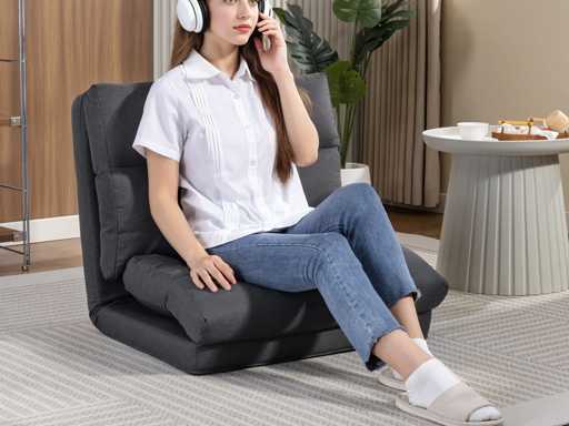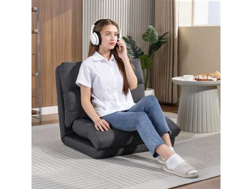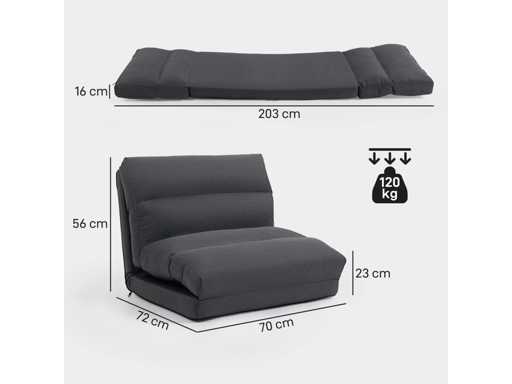 Poef die omgebouwd kan worden tot bed, achteroverleunbaar, opvouwbaar, donkergrijs