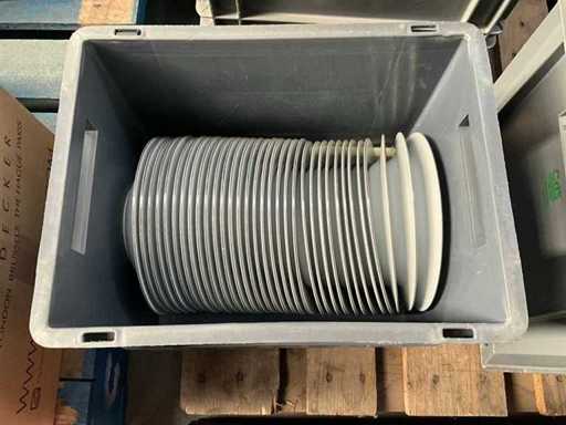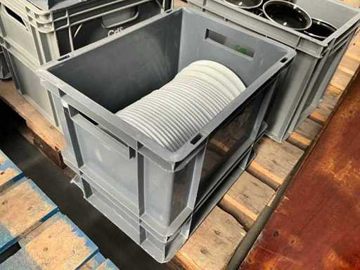 Elk met diameter 22,5 cm, in grijze pvc opbergbak.