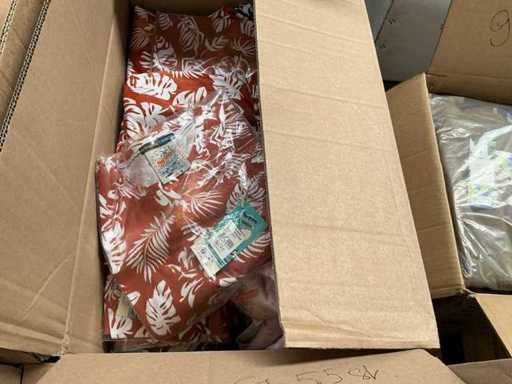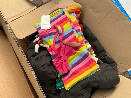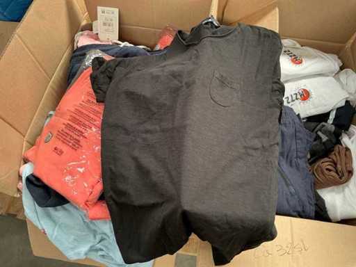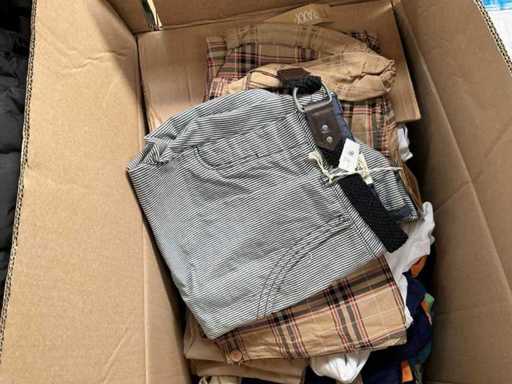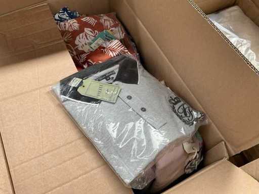 Waaronder circa 65 diverse shorten en bermuda’s MZ72, circa 32 diverse jassen, tanktops, shirts en shorten, circa 55 T-shirts, circa 42 zwembroeken, topjes en polo’s, allen in diverse kleuren en maten