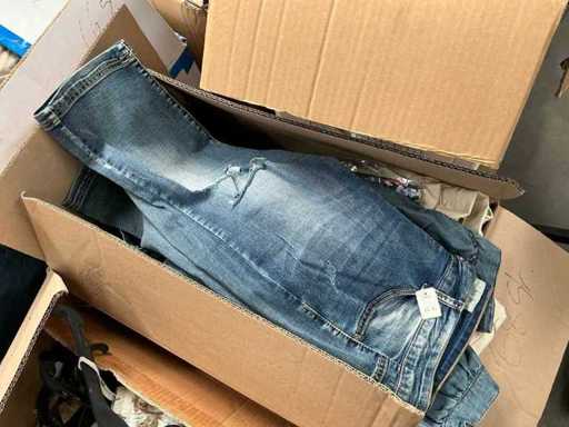 Waaronder circa. 50 damesshorts, circa. 68 jeansbroeken, circa 50 shorts en truien en circa 66 herenshorts, allen in diverse kleuren en maten