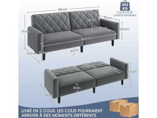 2-zits cabrioletbank met verstelbare rugleuning - donkergrijs