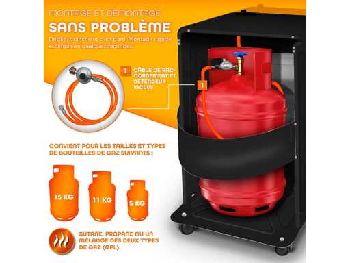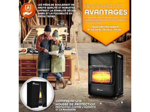 COMPACT & MOBIEL: VOORZICHTIG: EEN EUROPESE GASADAPTER (NIET INBEGREPEN) IS VEREIST OM DE SLANG AAN DE GASCILINDER TE KOPPELEN. Onze infraroodgasverwarming wordt gekenmerkt door een ruimtebesparend ontwerp en hoge mobiliteit. Het is de ideale oplossing voor balkons, terrassen en goed geventileerde kamers. Met twee handvatten en vier wielen is de kachel gemakkelijk te bewegen en veelzijdig.